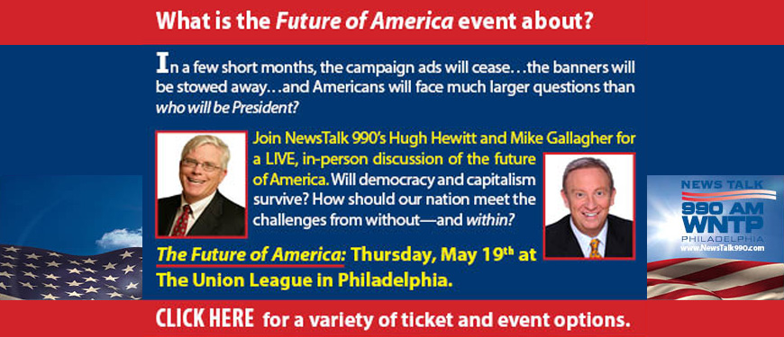 Come sit in on the Newstalk 990AM Morning Team with Hugh Hewitt from 6AM-9AM and Mike Gallagher from 9AM-12PM in the Library Room.
