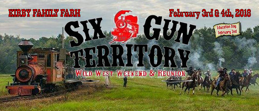 February 3rd and 4th, 2018, Gates open at 10:00 AM and features the original Six Gun Territory gunfights with original Six Gun Territory Gunfighters, train rides, live entertainment, fun rides, and more throughout the day until 4:00 PM on Saturday and Sunday. Friday, February 2nd, is set aside for Education Day.