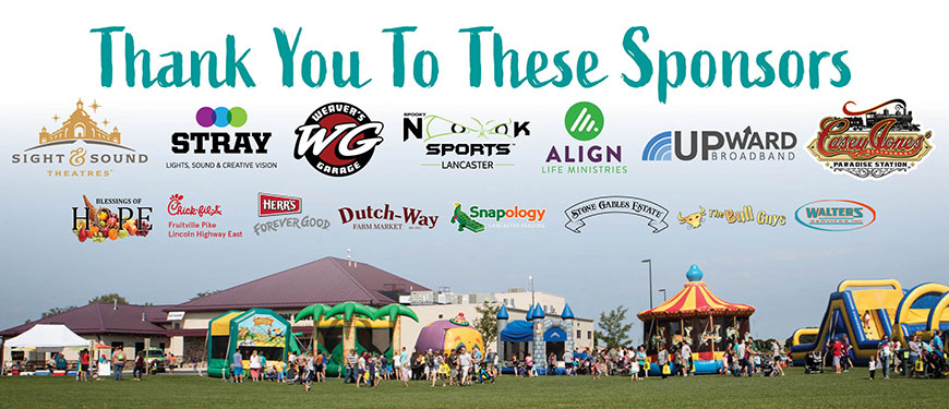 Special Thanks To Our Sponsors: Sight & Sound Theatres, Stray Productions, Weaver's Garage, Upward Broadband, Align Life Ministries, Casey Jones' Restaurant at Paradise Station, Spooky Nook Sports, Chick-fil-A, Bull Guy Inflatables, Blessings of Hope, and Herr's Snacks.