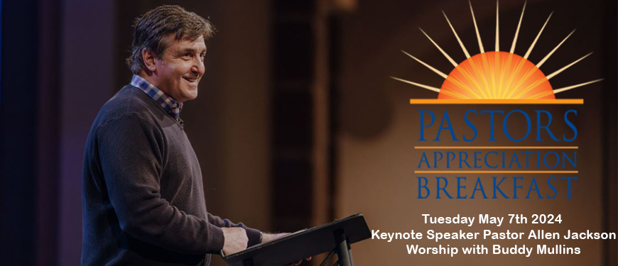 Pastors and Ministry Staff, You Are Invited! Join us for a morning of encouragement and inspiration (and breakfast of course) with this years' keynote speaker Pastor Allen Jackson and music from the Booth Brothers’ own Buddy Mullins. All completely Free thanks to our sponsors and their love for Pastors. Place it on your calendar! Tuesday May 7th, The 2024 Pastors Appreciation Breakfast at Villa Milano in Columbus. Seating is limited, so please register today! If you know a Pastor who may like to attend, please send them this page!